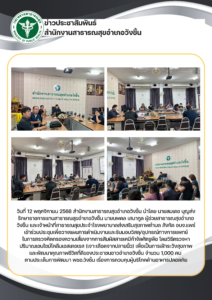 ประชาสัมพันธ์ ทั้งหมด ประชุมวางแผนการดำเนินงานการตรวจคัดกรองความเสี่ยงจากการสัมผัสสารกำจัดศัตรูพืช ประชุมคณะกรรมการชมรมผู้สูงอายุ ครั้งที่ 1/2569 ร่วมพิธีบำเพ็ญกุศลและแสดงความอาลัย ในวาระครบ 15 วัน อบรมฟื้นฟูการช่วยฟื้นคืนชีพขั้นพื้นฐานและการใช้เครื่องAED ประชุมคณะกรรมการพชอ. ครั้งที่ 1/2569 ร่วมทำบุญทอดกฐินสามัคคีเพื่อสมทบทุนซื้อที่ดินให้กับรพ.วังชิ้น ร่วมพระราชพิธีบำเพ็ญกุศล สวดพระพุทธมนต์อุทิศถวายพระราชกุศล สมเด็จพระนางเจ้าสิริกิติ์ พระบรมราชินีนาถ พระบรมราชชนนีพันปีหลวง Page1 Page2 Page3